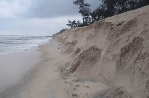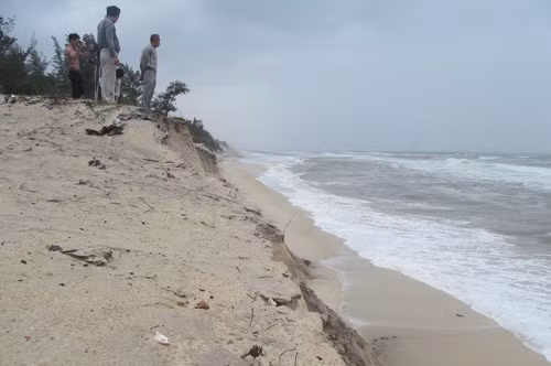 Do sóng to liên tục diễn ra dài ngày khiển từng tảng cát to bị sóng cuốn dần ra biển, điều này gây hoang mang cho người dân đang sinh sống tại khu vực này.