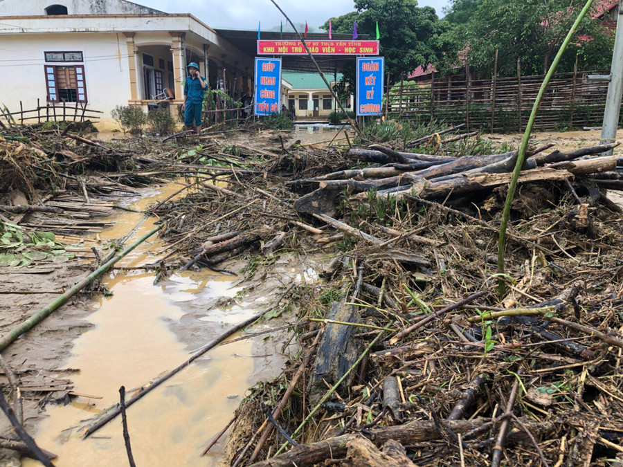 Đặc biệt, Trường PTDTBT THCS Yên Tĩnh bị ngập hoàn toàn, nhà bán trú học sinh, nhà công vụ giáo viên, nhà ăn và 8 phòng học bị ngập nước từ 1 m đến 1,5 m có chỗ sâu 2 m. Hiện bàn ghế, sách vỡ, đồ dùng học tập của thầy cô giáo bị hư hỏng hoàn toàn.