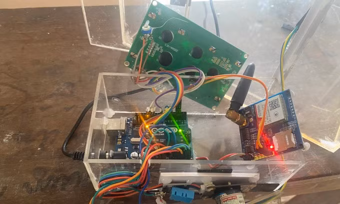 Thầy Đặng Ngọc Chính cho biết, hệ thống được cấp bởi nguồn điện 12V. Các khối cảm biến độ ẩm không khí, cảm biến oxy và cảm biến nhiệt độ nhận thông tin từ môi trường sau đó đưa tín hiệu về mạch điều khiển Arduino Uno.