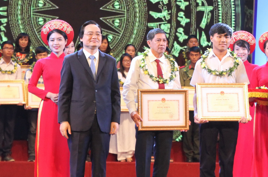 Thầy Trần Trọng Hoàng nhận bằng khen của Bộ trưởng Bộ GD&ĐT tại lễ Tuyên dương gương người tốt, việc tốt, đổi mới sáng tạo trong dạy và học năm học 2016-2017