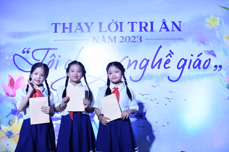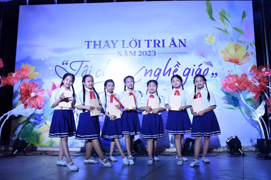 Em Nguyễn Bảo Thư - học sinh Trường THCS Nguyễn Du (Hà Nội) chia sẻ: Em rất tự hào, vinh hạnh khi được tham gia biểu diễn văn nghệ dành tặng các thầy cô trong Lễ tri ân năm 2023.