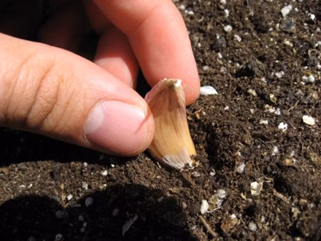 Cho tỏi vào phần đất đã được làm tơi xốp.