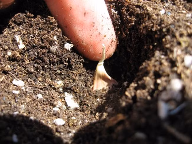 Lưu ý là để phần nhọn của nhánh tỏi hướng lên trên.