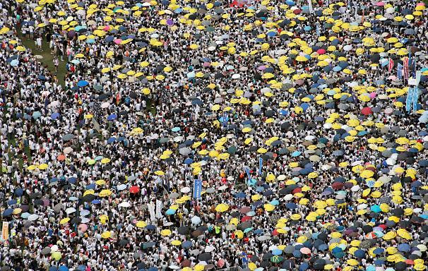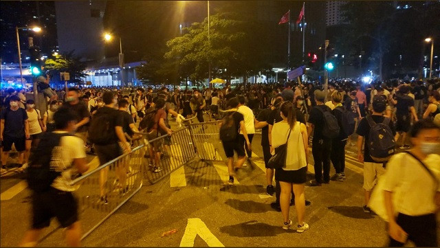 Tuy nhiên, cuộc biểu tình ôn hòa đã biến thành bạo lực khi người biểu tình cho rằng cảnh sát cố gắng ép họ vào tòa nhà của Hội đồng Lập pháp. Cảnh sát đã dùng bình xịt hơi cay và họ có trang bị súng hơi cay.