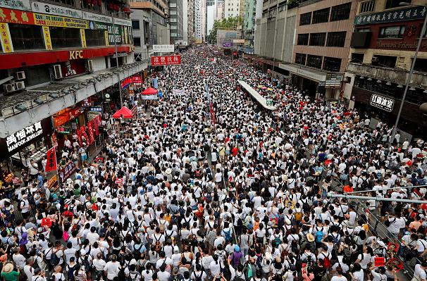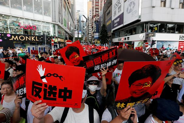 Những người biểu tình hô vang “bảo vệ Hong Kong”, “không dẫn độ tới Trung Quốc”… và kêu gọi Trưởng đặc khu hành chính Carrie Lam từ chức.