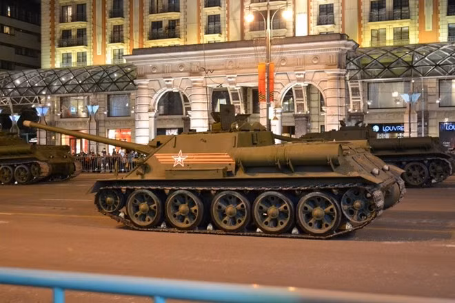 Xe tăng, thiếp giáp hạm ầm ầm đổ về Quảng Trường Đỏ trước sự trầm trồ của dân chúng.