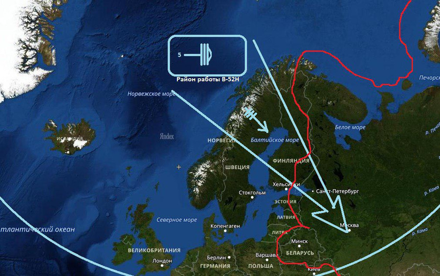 Theo những số liệu đã biết, 5 máy bay ném bom chiến lược B-52H Stratofortress của Mỹ đã được quan sát thấy ở khu vực phía bắc Biển Na Uy, cách biên giới không phận Liên bang Nga khoảng 450-500km.