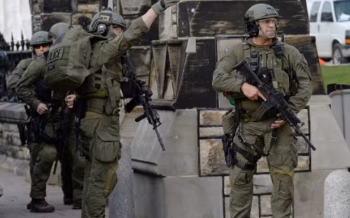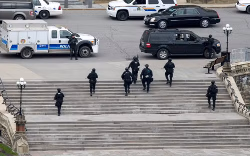 Hàng chục cảnh sát đặc nhiệm, được trang bị vũ khí hạng nặng đã được triển khai, trong khi toàn bộ khu vực trung tâm Thủ đô Ottawa bị phong tỏa.