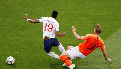 Trong khoảng hơn 20 phút đầu, bóng hầu như chỉ lăn bên phần sân ĐT Anh. Cơn lốc da cam với ưu thế về thể lực liên tục áp sát gây sức ép khiến các học trò HLV Southgate cầm bóng cũng khó chứ đừng nói đến việc tổ chức tấn công. Rất tiếc là sau khi Depay và Bergwijn bỏ lỡ những cơ hội khá rõ ràng, sự hưng phấn của Hà Lan lại bị chính trung vệ De Ligt của họ làm cho tắt ngấm.