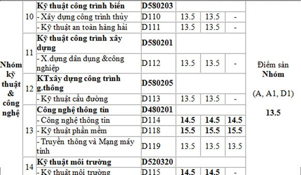 | 2 | D510302 | Công nghệ kỹ thuật điện tử, truyền thông | A | 14.5 | |
