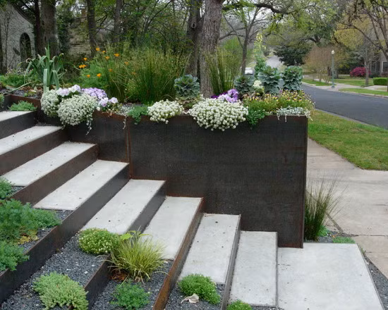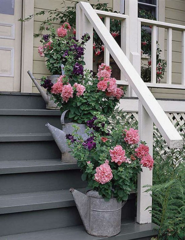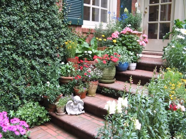 Theo các kiến trúc sư, bậc thềm với những kiểu trang trí truyền thống hoặc hiện đại, sáng tạo sẽ làm cho ngôi nhà của bạn trở thành không gian thư giãn tuyệt vời. Hãy tận dụng những bình tưới cây cũ, trồng vào đó những bụi hoa rực rỡ, đặt trên từng bậc thang trước nhà, vậy là bạn đã có thềm hoa sinh động và đầy nghệ thuật rồi!