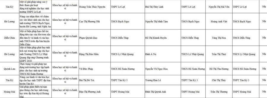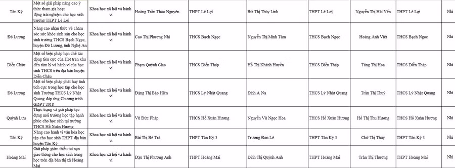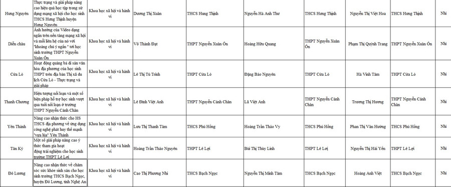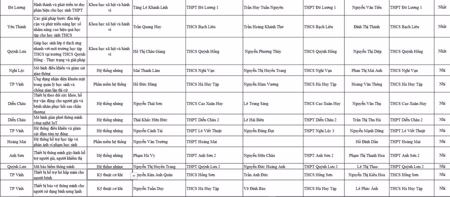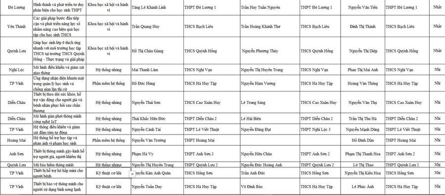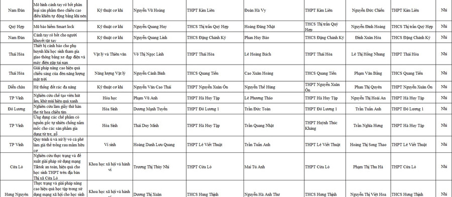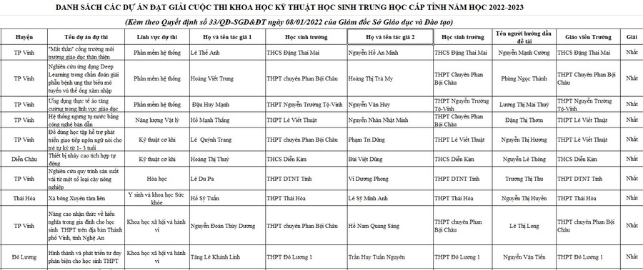 Danh sách 12 dự án đạt giải Nhất và 33 giải Nhì tại cuộc thi Khoa học kỹ thuật học sinh trung học tỉnh Nghệ An năm 2022-2023: