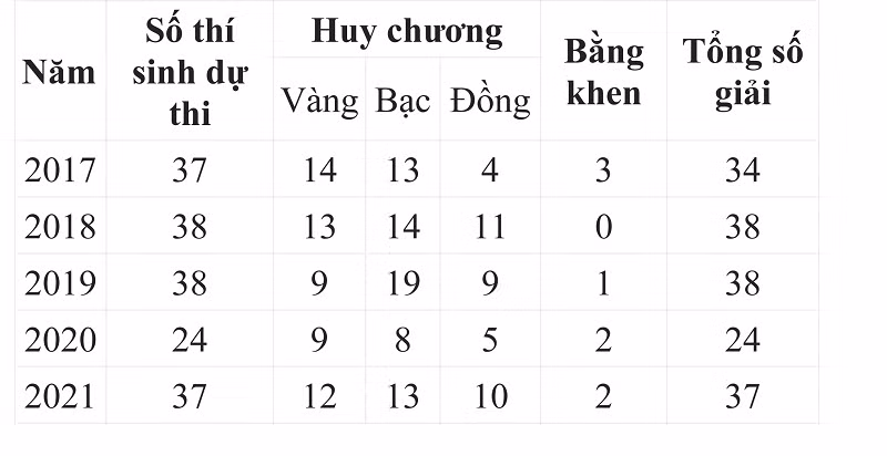 Kết quả thi Olympic khu vực và quốc tế 2017 - 2021: