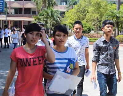 | Thí sinh rời phòng thi trong tâm trạng phấn khởi vì làm được bài |