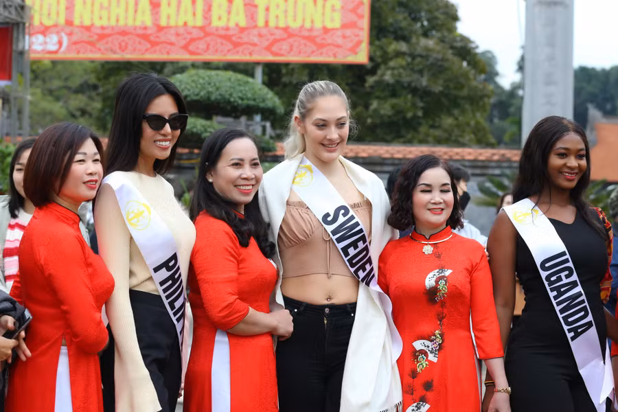 Ngày 8/12, các người đẹp tham dự Vòng chung kết cuộc thi Hoa hậu Du lịch Thế giới đến tham quan và check-in tại Lễ hội hoa Mê Linh. Sự kiện này được cho là cơ hội để quảng bá hình ảnh huyện Mê Linh tới bạn bè quốc tế.