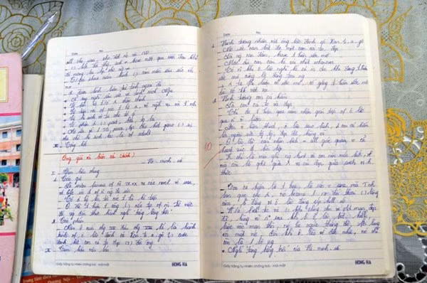 Nét chữ ngay ngắn trong bài văn được điểm 10 của Phương.