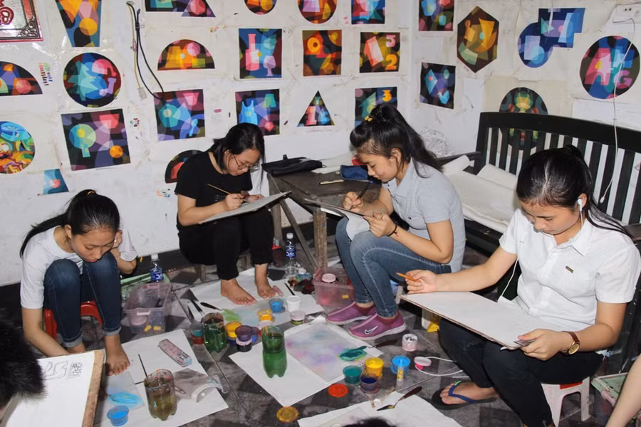 Được biết, để tạo điều kiện cho các em ở xa luyện vẽ, thầy giáo đã bố trí cho các em được ở luôn tại lớp ôn luyện, tiết kiệm chi phí thuê nhà trọ.