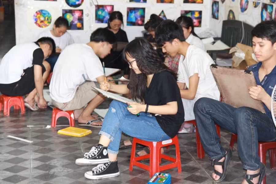 Lớp học vẽ tại phường Vinh Tân, TP Vinh, Nghệ An những ngày này vẫn còn rất đông các em học sinh theo học. Học sinh của lớp không chỉ ở thành phố Vinh và các huyện lân cận, mà nhiều em nhà cách hàng trăm km, có em từ Hà Tĩnh sang ôn luyện.