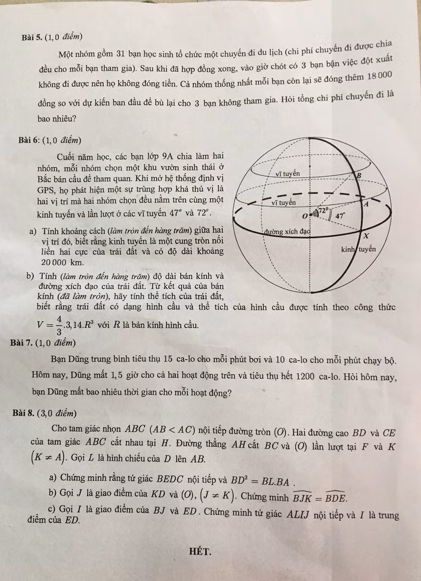 | Ảnh chụp đề thi môn Toán. |