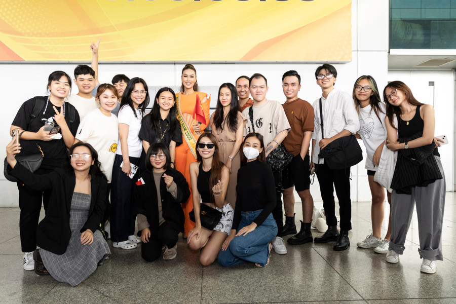 Đến tiễn Hoa hậu còn có sự xuất hiện của “bà trùm Hoa hậu” Phạm Kim Dung - Chủ tịch Miss Grand Vietnam, Á hậu Ngọc Thảo, Á hậu Quỳnh Châu và Á hậu Tuyết Như.