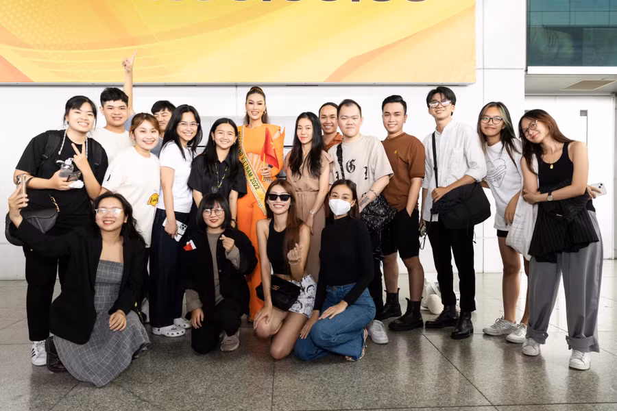 Người đẹp Trần Thị Bé Quyên - Top 10 Miss World Vietnam 2022 và cũng là bạn thân của Thiên Ân đã đến để ủng hộ tinh thần cho nàng hậu. Người hâm mộ cũng có mặt từ sớm để cổ vũ Đoàn Thiên Ân.
