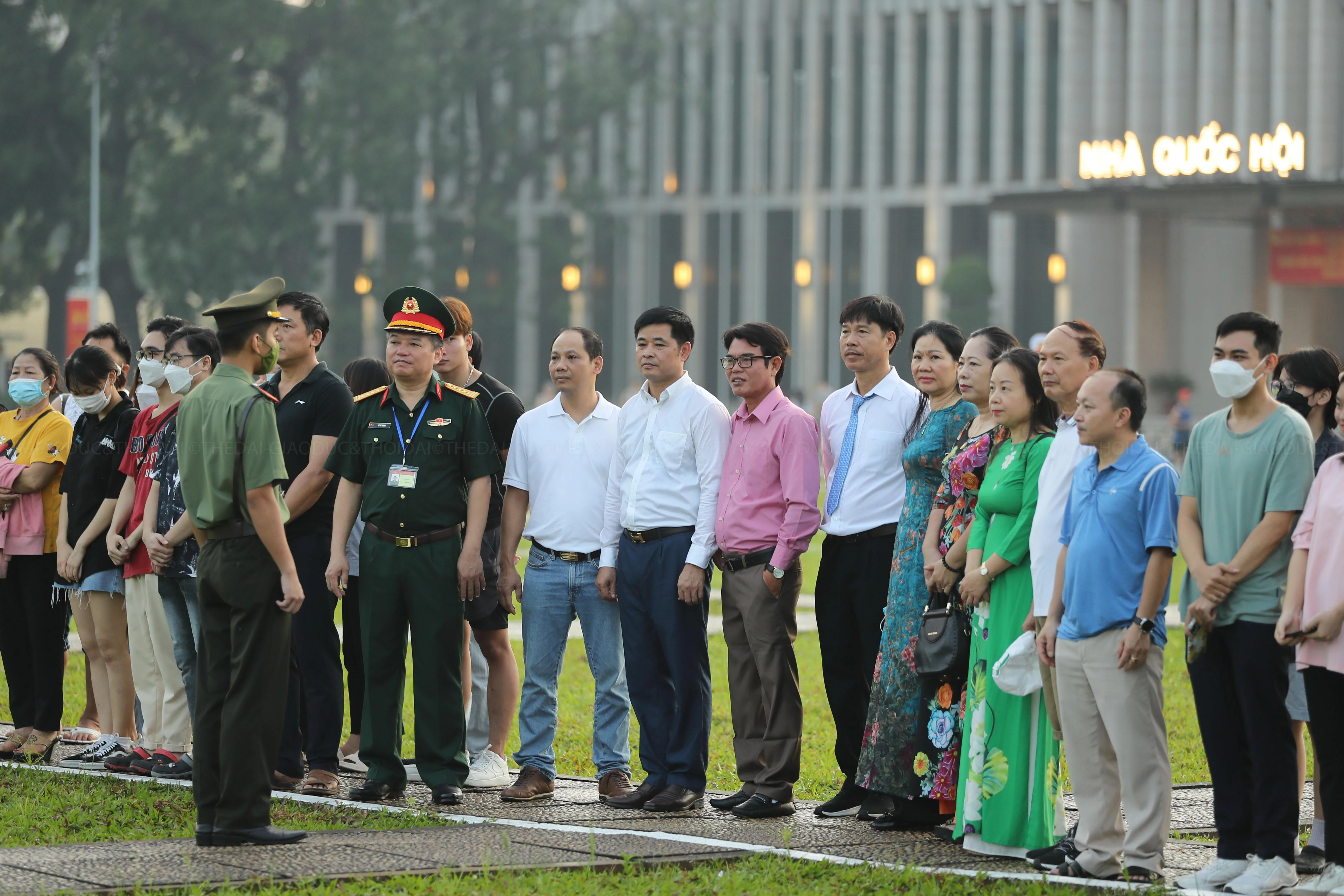 | Rất đông người dân đã có mặt tại khu vực Lăng Bác để tận mắt nhìn thấy lá Quốc kỳ tung bay trong một ngày rất đặc biệt. |
