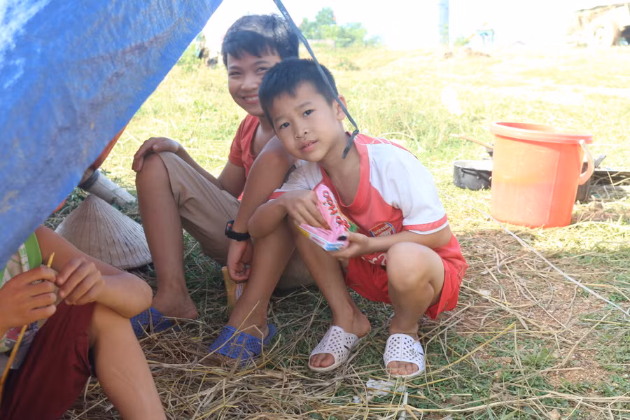 Mấy ngày qua, hàng trăm hộ dân sống và sinh hoạt tại các phòng học. Bữa ăn của các hộ gia đình là mì tôm và bánh mì từ các nhà hảo tâm cứu trợ. Có vài nhà may mắn mang theo được gạo và xoong nồi thì nấu cơm ưu tiên cho tất cả các cháu nhỏ.