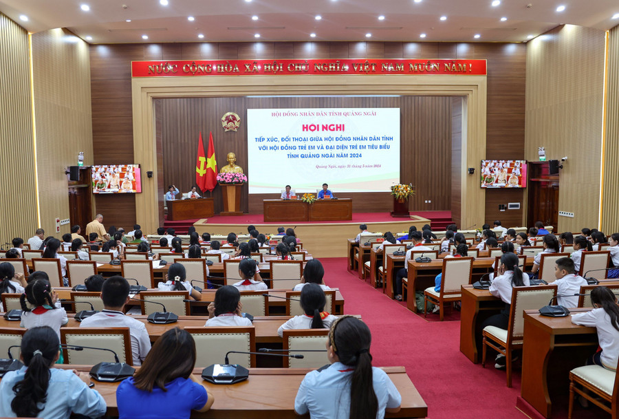 Ngày 31/5, HĐND tỉnh Quảng Ngãi tổ chức tiếp xúc, đối thoại với 100 đại biểu Hội đồng trẻ em và thiếu nhi tiêu biểu đại diện cho hơn 180.000 thiếu nhi toàn tỉnh.