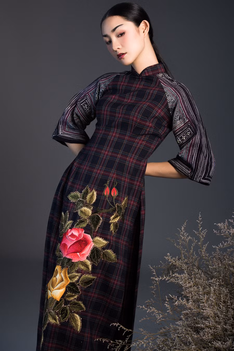 Nhà thiết kế nhận thấy vẻ đẹp đó rất thích hợp khi đưa vào tay zac - lăng của áo dài. Mỗi vai áo có sự kết hợp mầu sắc và hoạ tiết khác nhau, nhưng có chung một cách thể hiện đó là khâu tay và vẽ sáp ong theo hình khối hoặc các hình kỷ hà. Kết quả là khi nhà thiết kế kết hợp thổ cẩm với vải caro và thêu truyền thống đã tạo nên thông điệp ấn tượng về xu hướng mốt dành cho mùa mốt 2019.