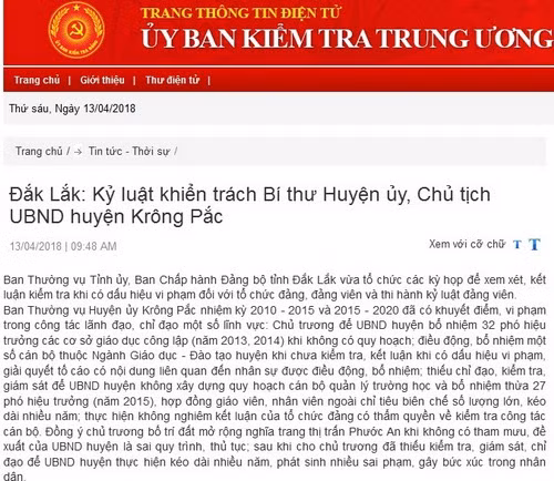 Theo đó, Ban Thường vụ Huyện ủy Krông Pắc nhiệm kỳ 2010 - 2015 và 2015 - 2020 đã có khuyết điểm, vi phạm trong công tác lãnh đạo, chỉ đạo một số lĩnh vực: Chủ trương để UBND huyện bổ nhiệm 32 phó hiệu trưởng các cơ sở giáo dục công lập (năm 2013, 2014) khi không có quy hoạch; điều động, bổ nhiệm một số cán bộ thuộc ngành giáo dục và đào tạo huyện khi chưa kiểm tra, kết luận khi có dấu hiệu vi phạm, giải quyết tố cáo có nội dung liên quan đến nhân sự được điều động, bổ nhiệm;