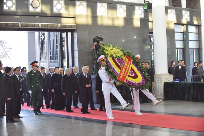 Trong niềm tiếc thương vô hạn, Đoàn Ban Chấp hành Trung ương Đảng do Tổng Bí thư Nguyễn Phú Trọng dẫn đầu vào viếng đồng chí Đỗ Mười.