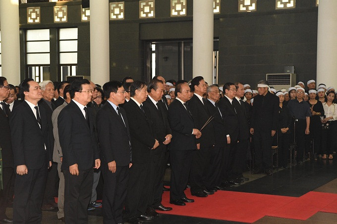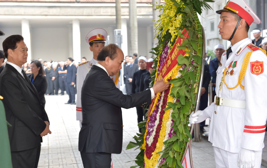| Tổng bí thư Nguyễn Phú Trọng, Thủ tướng Nguyễn Xuân Phúc dẫn đầu đoàn lãnh đạo Đảng, Nhà nước vào viếng nguyên Tổng bí thư Đỗ Mười. |