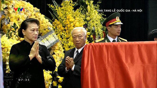 | Quyền Chủ tịch nước Đặng Thị Ngọc Thịnh cúi đầu tiễn biệt. Cố Tổng bí thư Đỗ Mười |