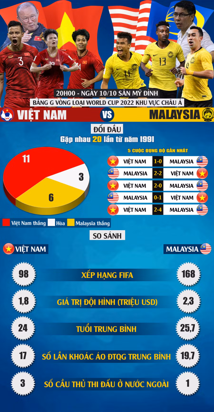 Để có hy vọng đi tiếp ở vòng loại World Cup 2022 khu vực châu Á, đội tuyển Việt Nam cần tận dụng tối đa cơ hội giành chiến thắng ở các trận sân nhà. Vì vậy, 3 điểm trước Malaysia được xem là nhiệm vụ bắt buộc với thầy trò Park Hang-Seo. Tuy nhiên, điều đó không đồng nghĩa rằng, đội tuyển Việt Nam buộc phải tạo ra thế trận tấn công liên tục trước người Mã.