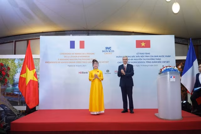 Trên cương vị là Chủ tịch Tập đoàn Sovico, Tổng giám đốc Vietjet, bà Nguyễn Thị Phương Thảo đã có những đóng góp đặc biệt trong việc thúc đẩy quan hệ hợp tác kinh tế, văn hóa, hợp tác phát triển, mang tới những dấu ấn mạnh mẽ trong quan hệ đối tác chiến lược, hợp tác kinh tế giữa Việt Nam và Châu Âu, giữa Việt Nam và Cộng hòa Pháp.