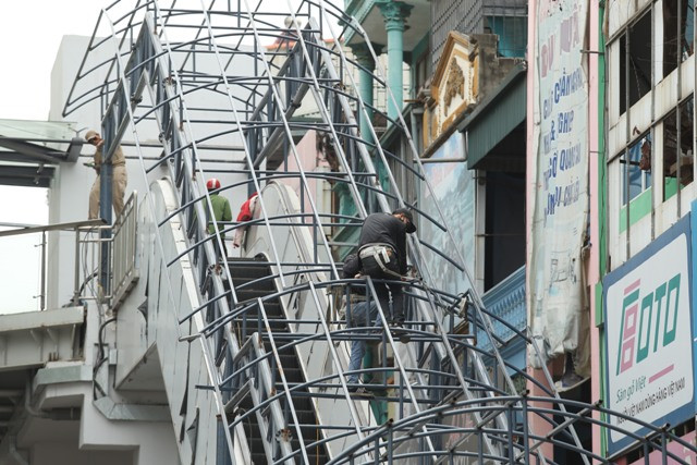 | nhiều đoạn đã lắp xong phần khung mái che cầu thang vẫn đang trong giai đoạn hoàn thiện |