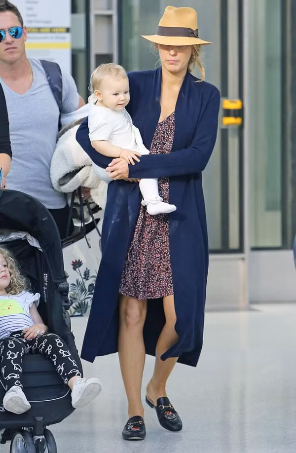 Bà mẹ 2 con Blake Lively khoe vóc dáng thon gọn sau sinh với đầm hoa nhí, cardigan dáng dài và giày loafer năng động.
