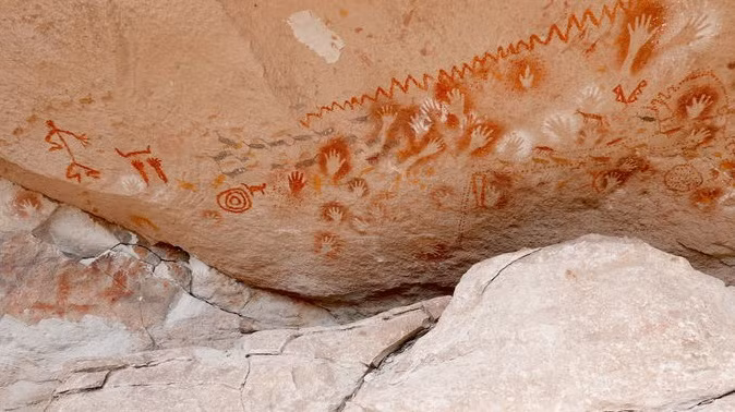 Ở lối vào hang động có vô số những dấu tay in trên cách vách đá. Có tổng cộng 829 dấu tay, hình ảnh động vật và cảnh săn bắn. Tất cả được lưu lại qua nhiều thời kỳ khác nhau.