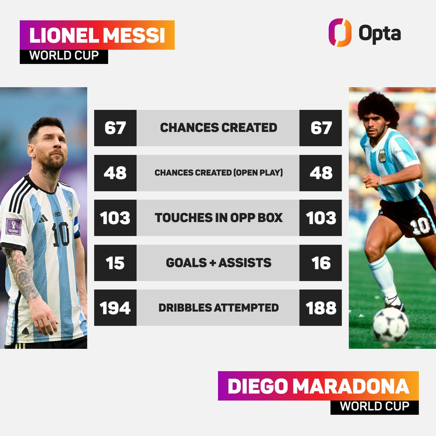 Hiện đã 35 tuổi nên Messi chỉ còn giải đấu trên đất Qatar để cùng Argentina đến đỉnh vinh quang như cố huyền thoại Maradona đã làm tại World Cup 1986. Nếu có được thành tích này, chủ nhân 7 Quả bóng Vàng sẽ được nâng lên tầm vĩ đại như huyền thoại từng ghi bàn thắng “Bàn tay của Chúa”.