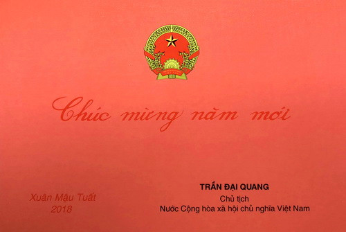 Nhân dịp năm mới 2018 và đón Tết cổ truyền Mậu Tuất, thay mặt lãnh đạo Đảng, Nhà nước, tôi gửi tới toàn thể đồng bào, đồng chí và chiến sĩ cả nước, đồng bào ta ở nước ngoài những tình cảm thân thiết và lời chúc mừng tốt đẹp nhất. Thay mặt Nhà nước và nhân dân Việt Nam, tôi trân trọng chúc nhân dân và bầu bạn khắp năm châu một năm mới hòa bình, hữu nghị, hạnh phúc và thịnh vượng.