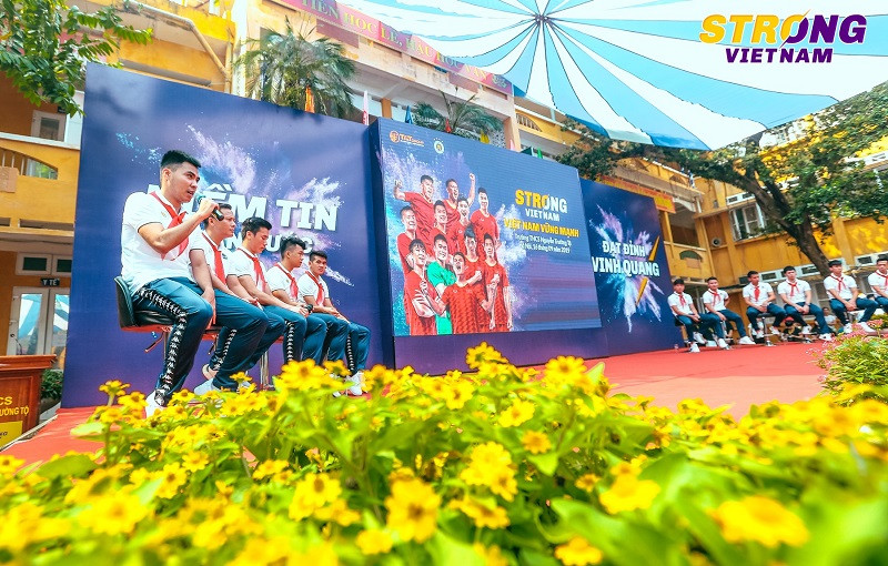 Tại buổi giao lưu, Quang Hải, Duy Mạnh, Đình Trọng, Đức Huy cùng đồng đội đã có những chia sẻ về quá trình khổ luyện để trở thành một cầu thủ chuyên nghiệp, những khó khăn, thách thức cả trong lẫn ngoài sân cỏ, ý chí phấn đấu để trở thành những cầu thủ tài năng như ngày nay.