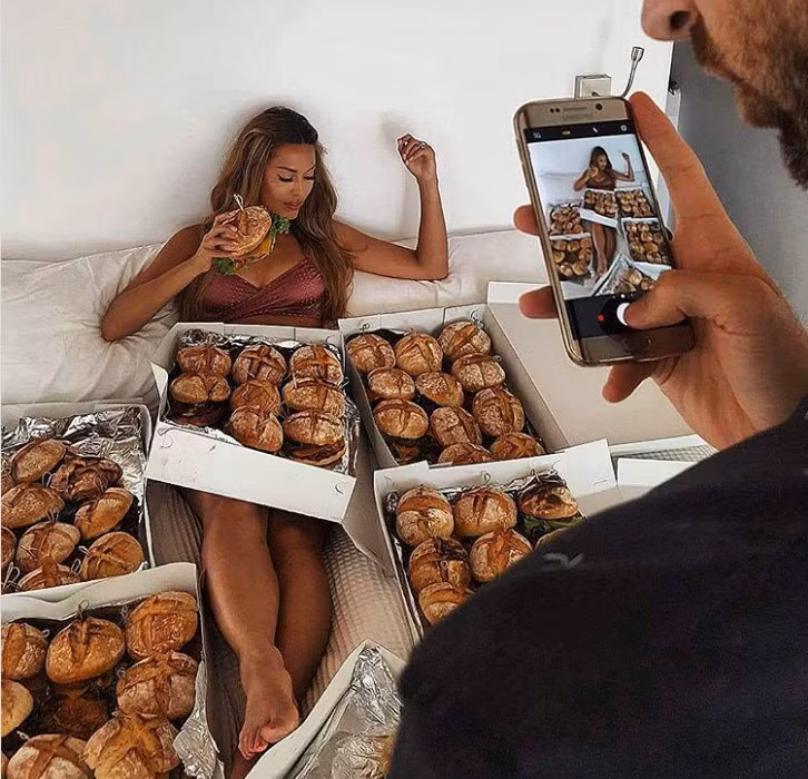 | 'Được rồi, anh sẽ chụp cho em bức hình với 75 chiếc burger xung quanh'. |