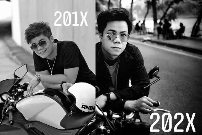 Diễn viên Mạnh Hưng cũng theo trào lưu khi đăng ảnh trẻ măng tạo dáng bên bờ hồ Hoàn Kiếm 10 năm trước và tạo hình vai diễn mới đang thực hiện trong "Hướng dương ngược nắng" sắp lên sóng.