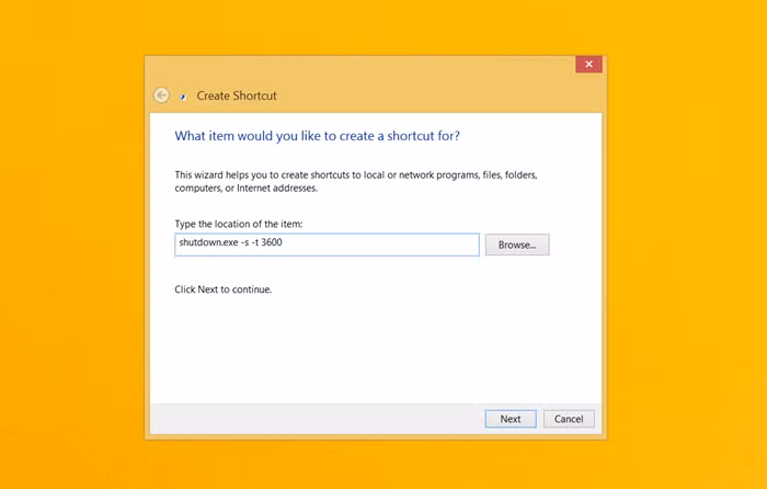 Ở trường nhập liệu hiện ra, bạn nhập "shutdown.exe -s -t XXXX" rồi click Next.