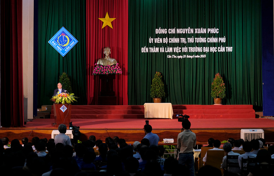 Thủ tướng đánh giá cao kết quả Đại học Cần Thơ (ĐHCT) đạt được trong 52 năm qua, kể từ khi thành lập. Trường đào tạo 98 chuyên ngành bậc đại học, 45 chuyên ngành thạc sĩ, 16 chuyên ngành tiến sĩ. Số sinh viên theo học gần 47.000 người, quy mô có thể so sánh với Đại học Quốc gia Hà Nội và Đại học Quốc gia TPHCM.