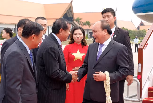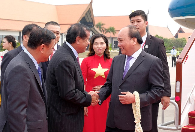 Đón Thủ tướng và Đoàn tại sân bay có Bộ trưởng Chính phủ Hoàng gia Campuchia, Đại sứ Campuchia tại Việt Nam Prak Nguon Hong; Đại sứ Việt Nam tại Campuchia Vũ Quang Minh; Tổng lãnh sự Việt Nam tại Battambang Nguyễn Xuân Thủy, cán bộ nhân viên Đại sứ quán Việt Nam tại Campuchia và Tổng Lãnh sự quán Việt Nam tại Battambang.