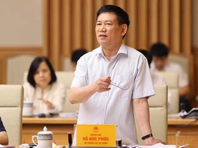 Bộ trưởng Bộ Tài chính Hồ Đức Phớc phát biểu tại cuộc họp - Ảnh: VGP/Nhật Bắc.