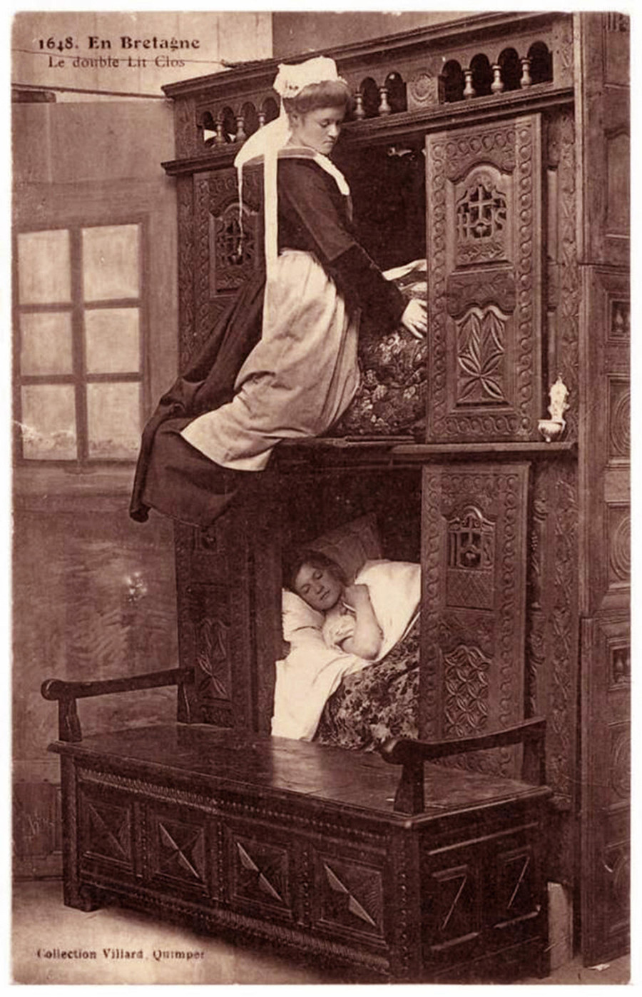 Trong một thời gian dài khoảng 600 năm, từ thời Trung Cổ, ở châu Âu, mọi người đều ngủ trong những cái giường giống như một cái hộp, một cái tủ đóng kín có một hoặc hai cánh cửa, phên đẩy. Với những gia đình đông con, nó còn có thêm nhiều tầng và là tiền thân của loại giường tầng hôm nay, song gắn vách ngăn.