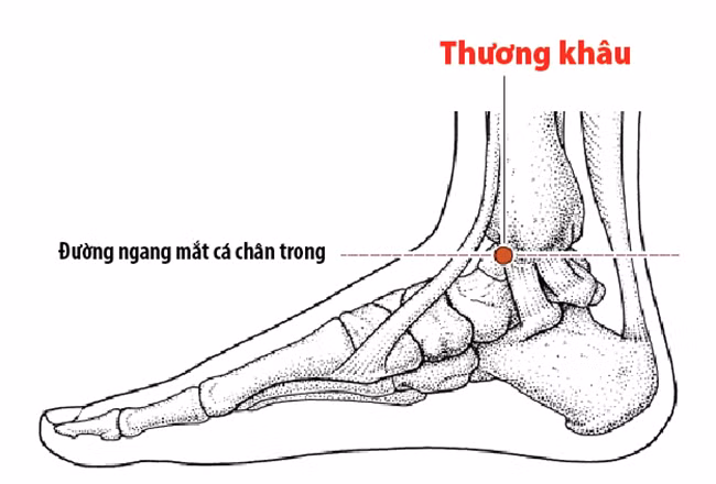 Bấm vào huyệt thương khâu và huyệt đại hoành có thể giảm nhẹ được các triệu chứng tiêu hóa kém và táo bón và phân tồn gây nên, đồng thời giúp giảm các hiện tượng lớp mỡ trên bụng quá dày, phần bụng dưới bị nhô ra một lớp mỡ thừa rất lớn. Vị trí của huyệt thương khâu nằm ở chỗ lõm phía dưới – trước mắt cá chân trong, bờ trên gân cơ cẳng chân sau, sát khe khớp gót – sên – thuyền, còn nằm ở hai bên rốn một khoảng cách 5 đốt ngón tay là huyệt đại hoành.