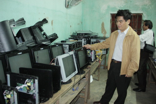 | Máy tính, phòng thí nghiệm của THCS Quảng Thủy bị ngập trong nước, thiệt hại trên 1 tỷ đồng. Ảnh, gdtd.vn |